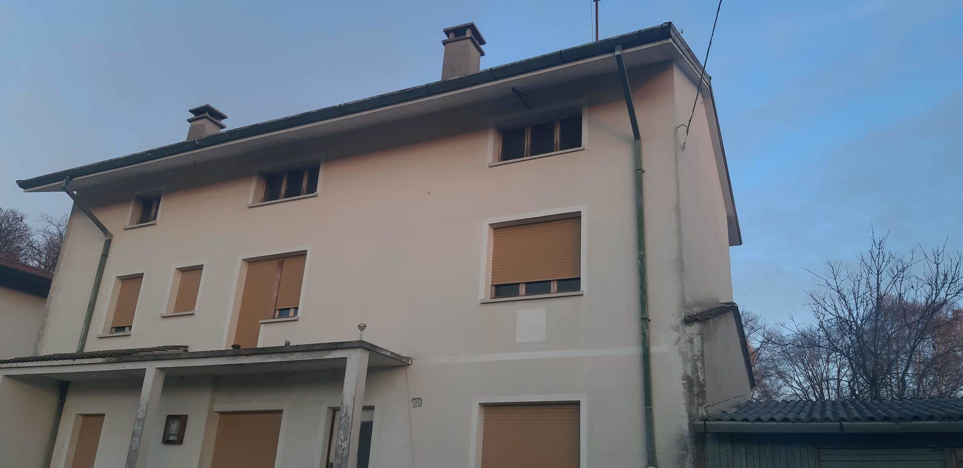 Trattasi di fabbricato unifamiliare indipendente con pianta rettangolare e sviluppo su 3 piani ( Rialzato - P1- Sottotetto circa 80 mq l'uno) + attiguo ampio deposito ad uso autorimessa (10.00 x 6.20) + ampio scoperto a verde (circa mq 1180) completamente recintato. Il fabbricato è ubicato sul versante SUD- OVEST del colle di Fraelacco. Il contesto paesaggistico nel quale è inserito il fabbricato presenta una vista panoramica “mozza fiato”, dagli affacci dell’immobile si può godere di una vista unica sulle colline friulane e su gran parte delle pre Alpi Carniche e Giulie. Al fabbricato si accede direttamente dalla viabilità pubblica dotata di tutte le reti tecnologiche (Fognatura - Energia elettrica- Acquedotto - Telefono ) Il fabbricato dopo la sua realizzazione ha subito interventi di adeguamento sismico post eventi sismici del 1976. L' immobile si presenta oggi da risistemare completamente. Sono presenti all' interno dello stesso le utenze di Energia elettrica Acqua, il collegamento alla fognatura risulta parzialmente realizzato. L'alloggio è attualmente suddiviso in ingresso – corridoio-cucina - soggiorno e ripostiglio al Piano rialzato – n°3 camere e bagno al Piano primo – soffitta abitabile nel sottotetto. Al piano terra è presente un corpo fabbrica ad uso deposito/garage con struttura in acciaio.