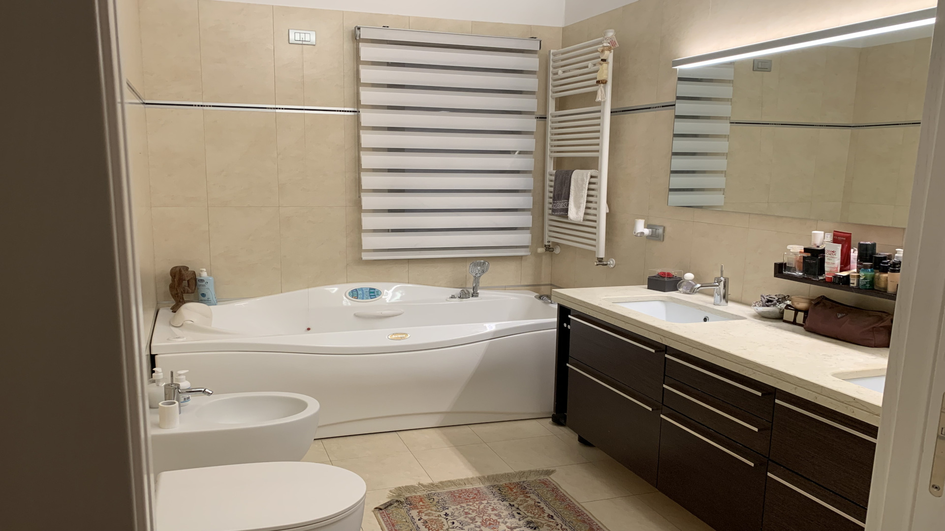 Splendido appartamento di ampie dimensioni nelle vicinanze del centro, composto nella zona giorno da un ingresso, ampio soggiorno, con un suggestivo camino a legna, dal quale si accede ad una zona soppalcata attraverso una scala moderna in legno con profili in acciaio. Dal soggiorno si accede inoltre ad una terrazza abitabile ed a una cucina separata che si affaccia ad una zona pranzo con ampie vetrate e un accogliente caminetto a gas. Grandi vetrate e lucernai assicurano luce ed al contempo la massima privacy. La zona notte è composta da 3 camere, 2 bagni finestrati uno con vasca idromassaggio, sanitari sospesi ed ulteriore terrazza con la centrale termica e zona lavatrice. Completano la proprietà al piano scantinato una cantina ed un garage. L’appartamento è stato costruito nel 2004. Recentemente l’appartamento è stato rinnovato in tutta l’abitazione con serramenti a doppio vetro camera con profili sottili raso muro ed è stata installata una caldaia con sistema integrato gas naturale e pompa di calore in sistema ibrido elettronico. Troveremo una porta di entrata con chiusura ed apertura attraverso impronta digitale, tessera o chiavi. Videocitofono con possibilità di rispondere ed aprire anche attraverso cellulare. Doppio climatizzatore zona giorno e zona notte in pompa di calore, riscaldamento a pavimento, travi a vista, ascensore.