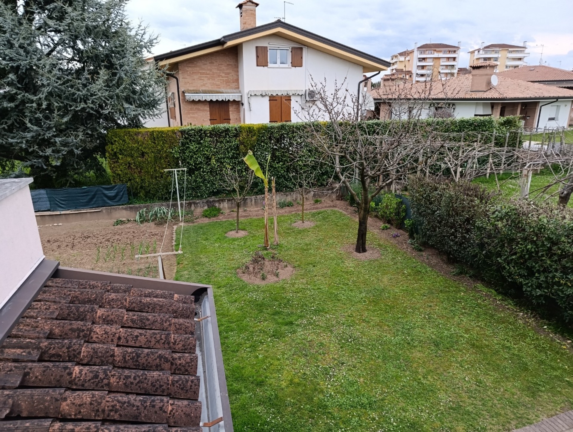 Riscaldamento a metano, climatizzazione, pannelli solari, giardino recintato e piantumato.